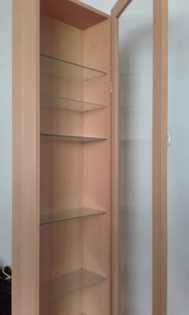 Prodám tři dřevěné prosklené závěsné skříňky,světlý buk viz foto,vhodné do kadeřnictví,salonů a obchodů,ale i do domácnosti.Cena je 500 Kč/Ks. Prodám i jednotlivě.Rozměry - Š/V/H - 42/169/17cm.