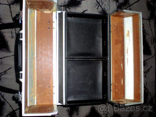 Kadeřnický kufřík hliníkový - rozkládací, použitý - na stěnách uvnitř chybí protinárazový potah (odloupl se), zesílené rohy proti poničení, popruh, viz. foto CENA: 800,-